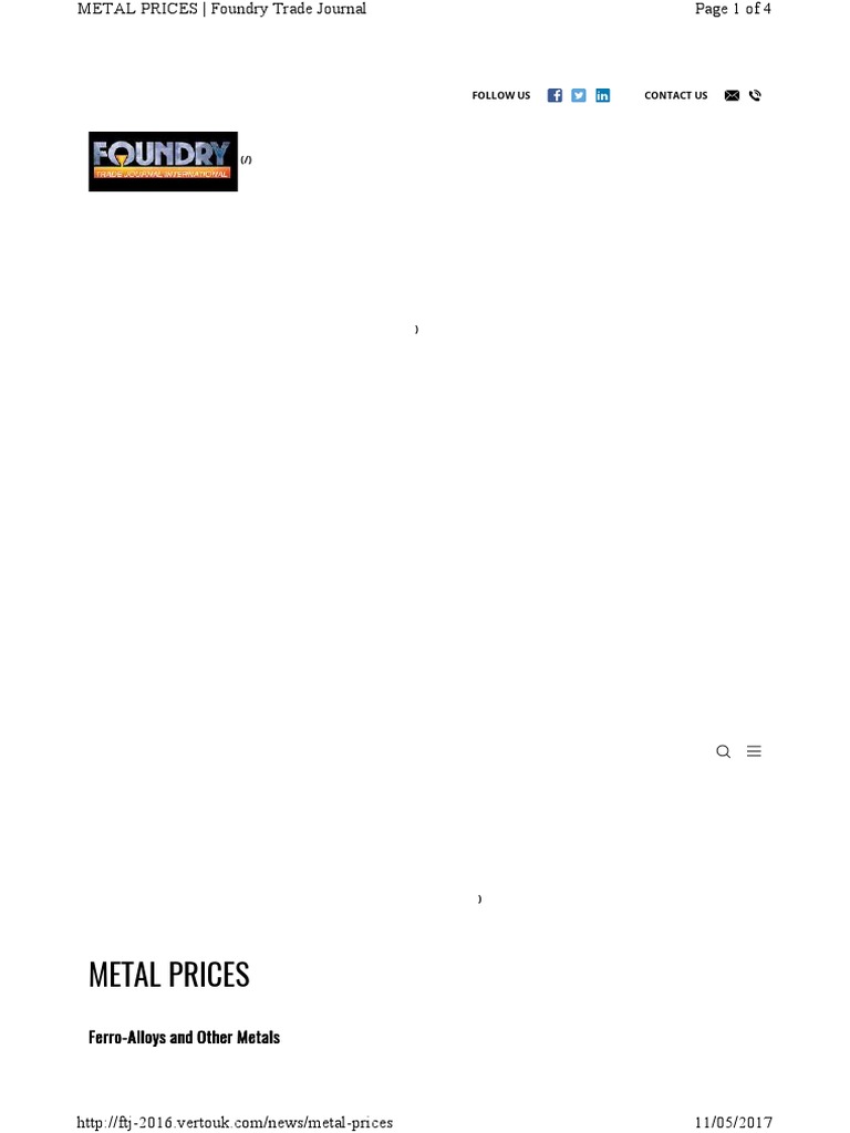 Metal Prices Follow Us Contact Us PDF Atoms Metallic Elements